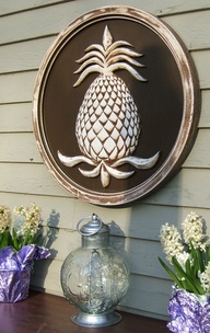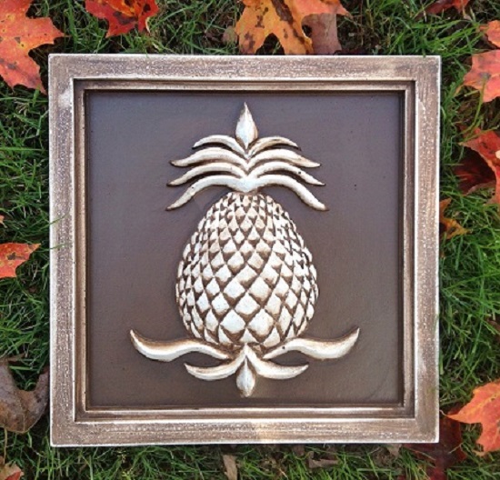 Pineapple Garden Plaque 24″ cast in lightweight foam. Our 24″ by 2″ Pineapple Plaques are a fabulous way to decorate your living space. You or your home builder or landscape architect can incorporate them into your home, remodeling project or garden for a welcoming focal point at your entry, in...